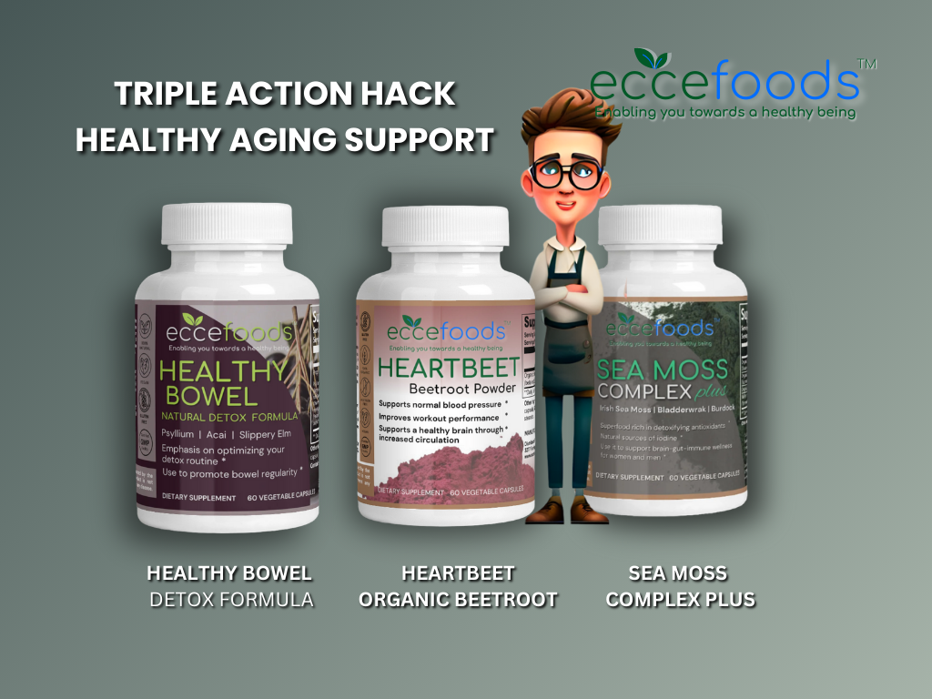 With just three products you have a rich combination of bioactive antioxidants and inflammation detoxing agents. They also have natural prebiotic polysaccharides which encourages bowel regularity.